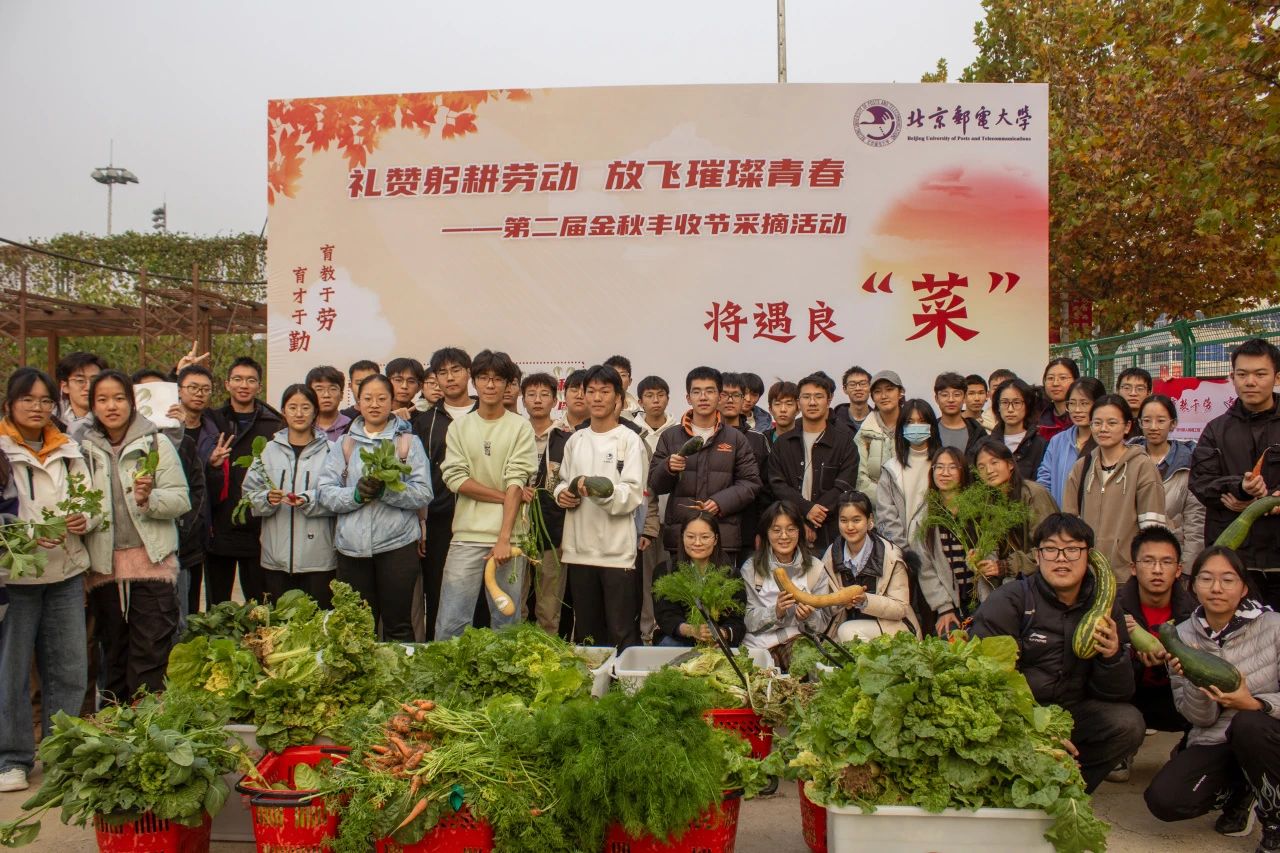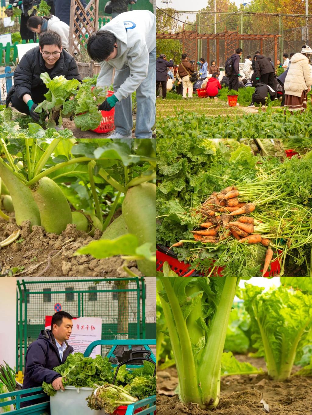 在沙河校区将遇良“菜”活动现场来自计算机、人文、网络安全、人工智能、电子信息工程等多个学院的近100名师生参与一米菜园采摘活动。现场师生在后勤工作人员的指导下,利用采摘工具将胡萝卜、白菜、茴香、香菜、小油菜、南瓜、大葱等成熟的瓜果蔬菜尽数采摘装箱,在泥土地与成熟果蔬的芬芳中沉浸式体验田间丰收的喜悦。