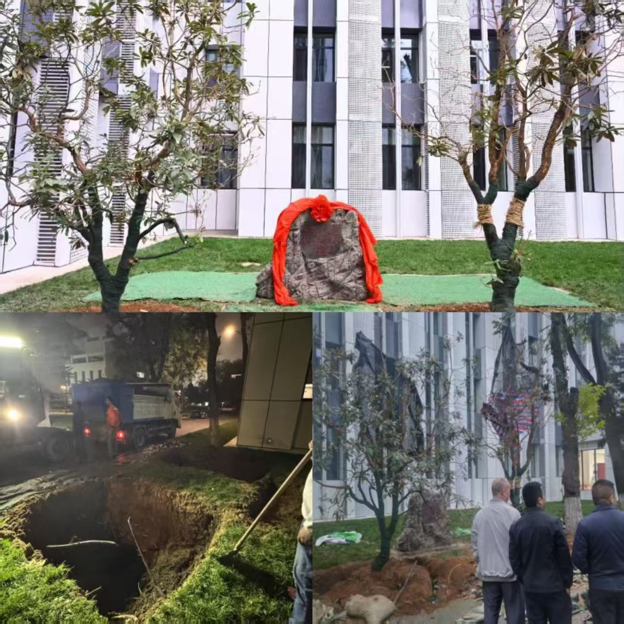 为确保树龄逾70年、极其珍贵的杜鹃花古树能够顺利在我校“安家落户”,后勤部高度重视,主动与长顺县相关部门对接,详细了解古树的特性、运输情况及移栽要求,组织专业技术力量,提前勘察选址。移栽过程中,严格按照古树移栽操作规程进行吊装、定位、填土、支撑及浇水,确保每一步都精准到位。指定专人负责,建立专项养护档案,对这两株珍贵的杜鹃花古树进行科学精细的长期管护。