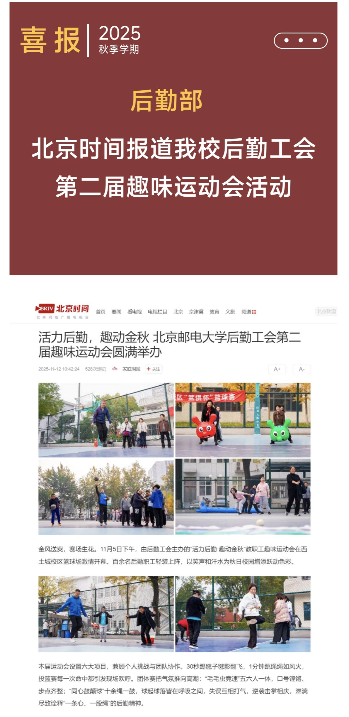 喜报 | 北京时间报道我校后勤工会第二届趣味运动会活动