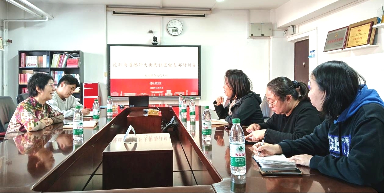 2025年11月19日,德外大街西社区党委书记、居委会主任王文娟一行来我校开展后勤党建与基层治理交流调研活动。后勤党委副书记赵晓晔以及后勤校园服务处党支部相关同志参与了此次调研交流。双方就支部党建、劳动育人、基层党组织协同共建和智慧化基层治理机制等方面展开了深入探讨。