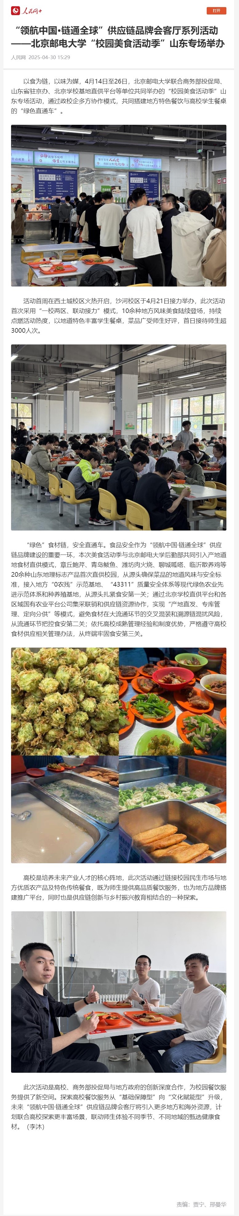 人民网报道我校“校园美食活动季”山东专场活动