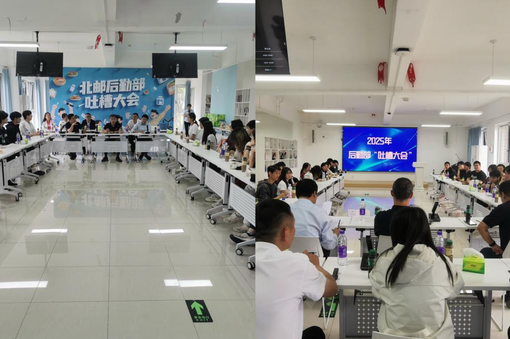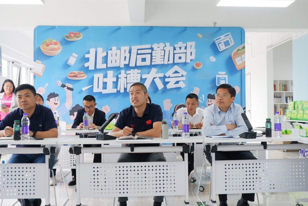 为持续开展深入贯彻中央八项规定精神学习教育,加强一线调研,关注师生急难愁盼问题,问需于师生,提升后勤服务质效,5月23日下午,沙河校区雁南园一站式多功能厅内洋溢着欢声笑语,一场别开生面的“吐槽大会”在此举行。学生代表与后勤服务团队围坐交流,以轻松活泼的方式开展深度交流对话。