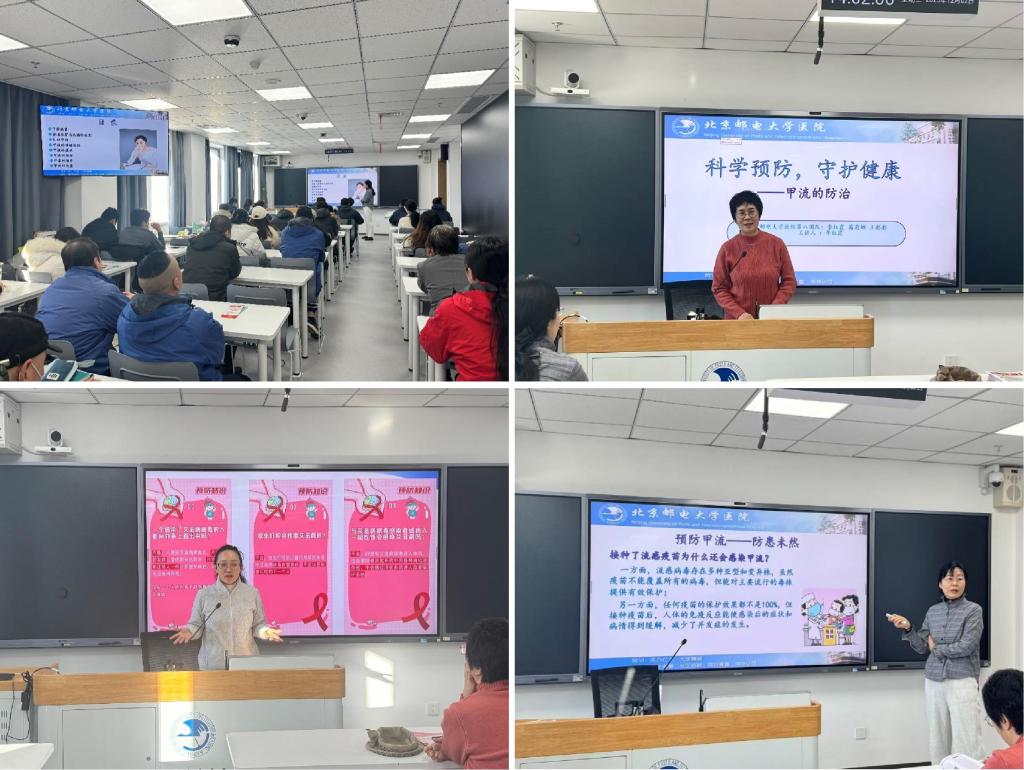 赵晓晔首先对校医院医护团队的到来表示感谢,她强调后勤部致力于将健康服务延伸至每一位后勤职工,聚力织牢职工健康保障网。校医院副主任医师李红霞结合冬季呼吸道传染病高发态势,就甲型流感的病原特点、传播途径、典型症状、与普通感冒的区别以及科学预防措施进行系统讲解。她特别强调,后勤职工日常工作接触面广,更应重视个人防护,养成良好的卫生习惯,如勤洗手、常通风、在人员密集场所规范佩戴口罩等。