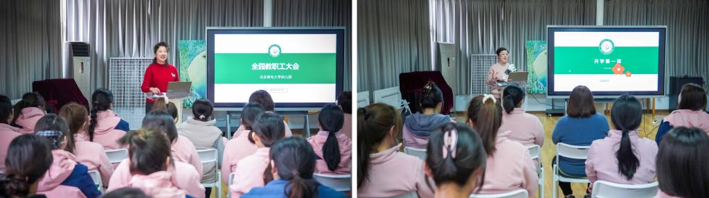 北邮幼儿园全体教职工提前到岗,全面开展园区大扫除,营造安全整洁、温馨舒适的园所环境。全园大会上,围绕师德建设、保教安排、安全护航等重点内容,统筹安排各项工作,明确目标任务,全体教职工整装待发,准备开启新学期生活。