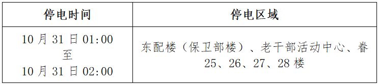 为配合热力外管线施工项目,在居民总配接驳临时电源,届时将对北家属区部分楼宇临时停电。具体时间如下: