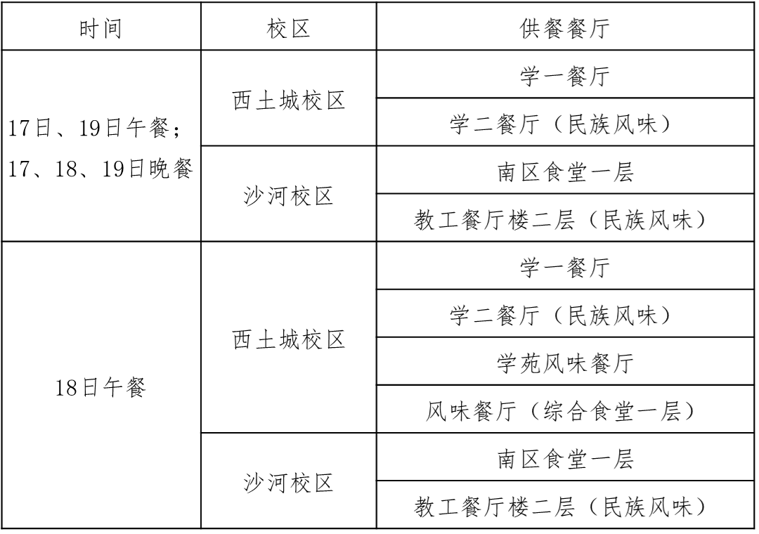 (校庆期间所有餐厅供餐,提供专属套餐的餐厅如下)