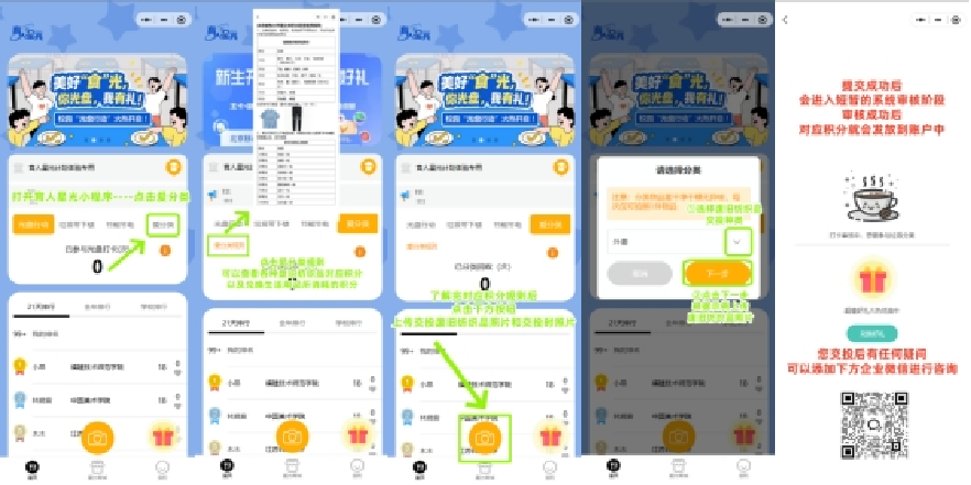 担心参与流程复杂,没时间折腾?完全不用愁!整个过程简单到几步就能完成:第一步,整理好宿舍里不需要的换季衣物;第二步,打开育人星光平台,选择对应纺织品种类,拍照片上传;第三步,把衣物投到宿舍楼下的废旧纺织品回收箱,静静等待系统审核;审核通过后,积分自动到账,随时可以去宿管阿姨处兑换相应的生活物资,实现“零负担参与”。