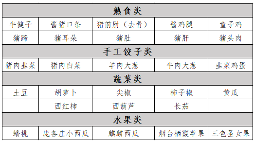 参考商品:蔬菜、水果、熟食、半成品等(以营业当天实际供应为准)