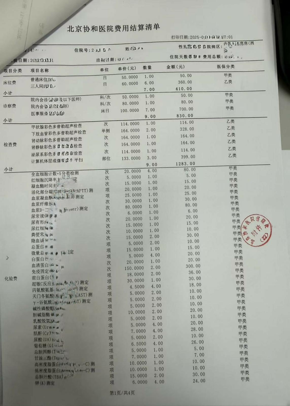 5、住院费用明细单(总表)
