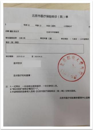 ②校医院开具的转诊单(盖章有效);
