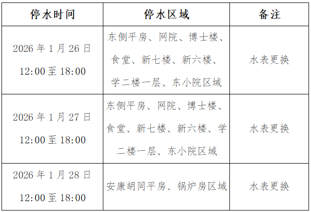 2.后勤部将根据工作推进实际情况,全力争取提前恢复供水,请广大居民、师生予以理解与支持。
