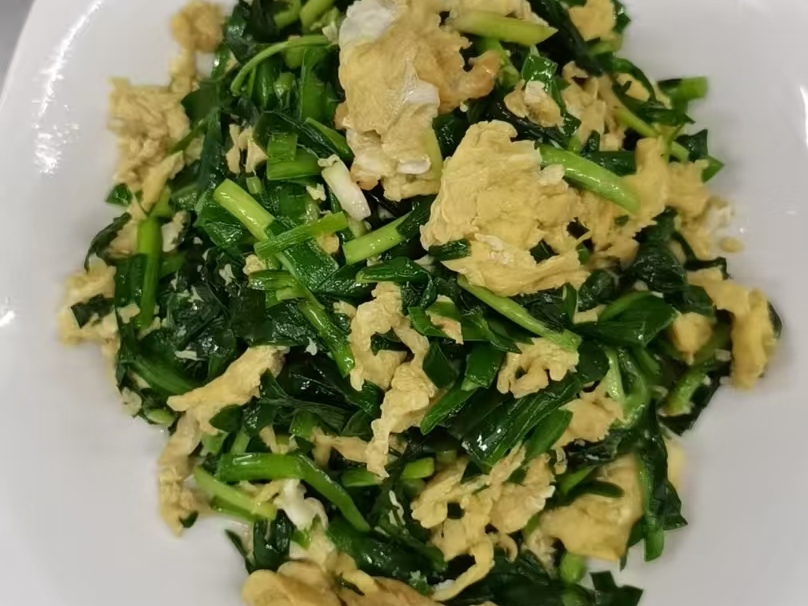 韭菜炒鸡蛋,补充膳食纤维和B族维生素,促进消化