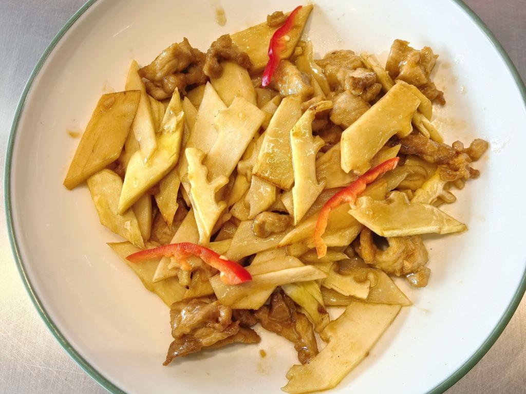 春笋炒肉片,富含膳食纤维,补充维生素和矿物质