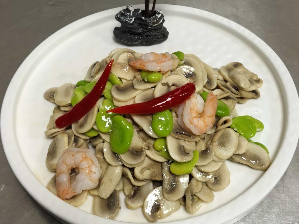 鲜蚕豆炒口蘑,植物蛋白丰富,高营养、低热量