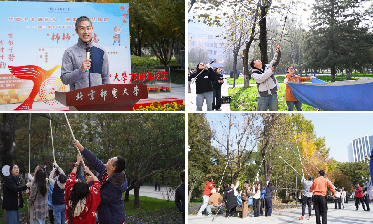从柿树下的协作采摘,到校史馆里的精神回望,这场丰收节不仅是一次劳动实践,更成为学校落实“三全育人”“五育并举”的生动课堂 —— 以柿为媒,承邮志;以劳育人,品初心,为70周年校庆写下了充满烟火气与青春力的一笔。